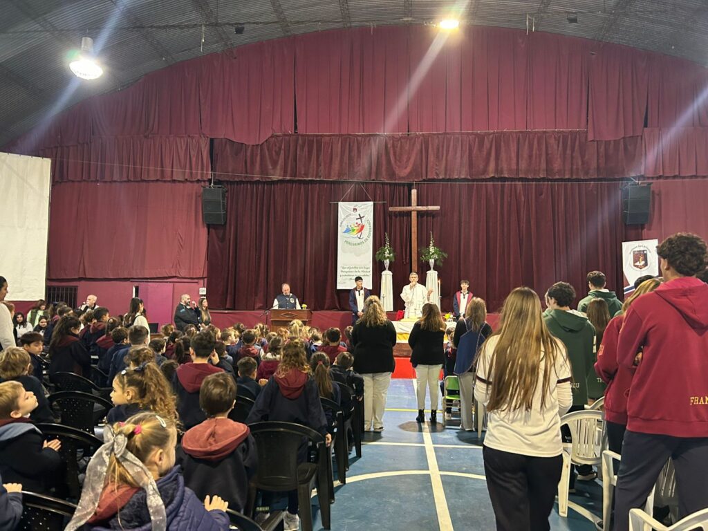 El 28 de abril, en el colegio, tuvimos la misa por la celebración de la pascua y además, recordamos y agradecimos al Papa Francisco por su legado y su gran amor a la comunidad cristiana.